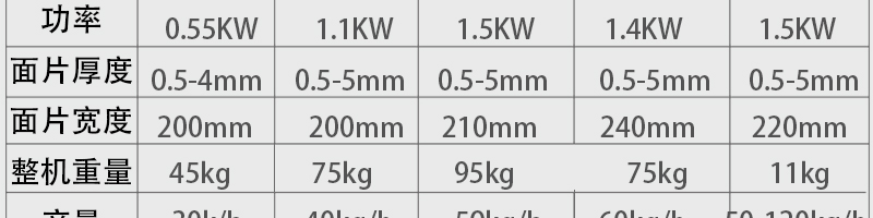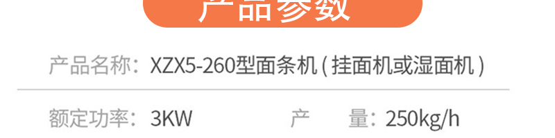名稱MT260-5多功能面條機 電源 功率3kw 產(chǎn)量200kg/h 尺寸1800*620*1400mm 重量560kg 規(guī)格 其他