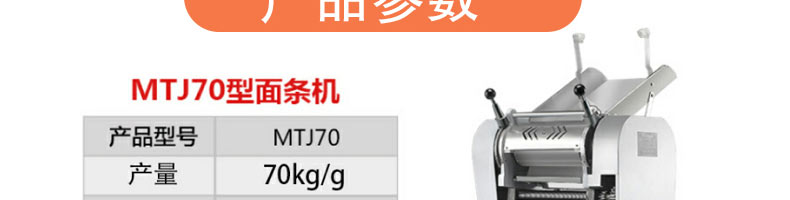 名稱70型全自動壓面面條機 電源380v 功率2.2kw 產量70kg/g 尺寸900*650*1200mm 重量170kg 規格 其他
