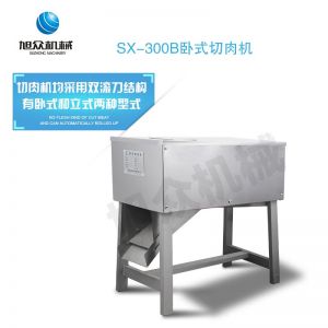 SX300B 臥式切肉機,臥式切肉機均采用雙滾刀結構,有臥式和立式兩種型式。各種款式切肉機原動力和刀梳、切肉部分的原理,結構大致相同,都具有結構緊湊,外形美觀、操作方便、效率高、耗電小、清潔保養容易、安全衛生、切肉效果好等優點。
