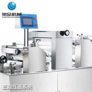 xz-15c三道搟面酥餅機,仿手工制作面食產品的機型,占地面積小,重量輕,運用搟面杖壓面和打擊面團,以保證高面筋性和面帶的密度,并綜合考慮面食的口感而研發??缮a東北糖酥餅,東北大香酥餅,蘇式月餅,芝麻餅,鮮花餅,老婆餅。購機免費提供工藝技術
