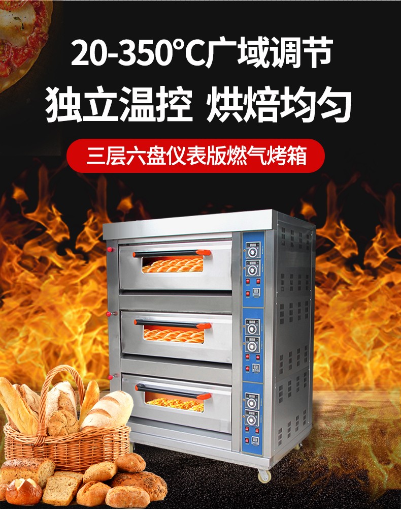 三層六盤儀表版燃氣烤箱,