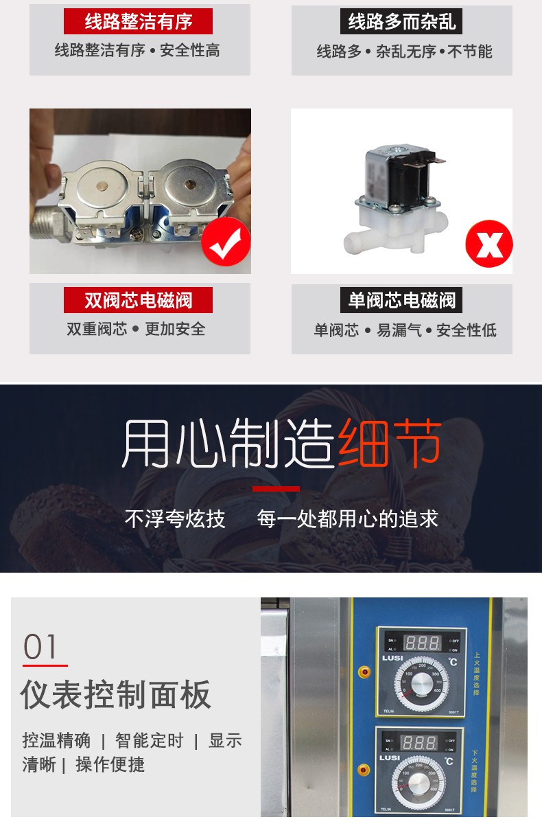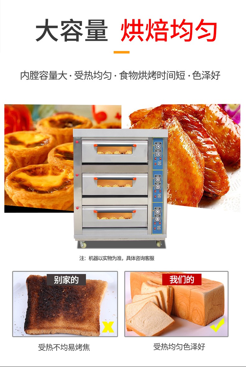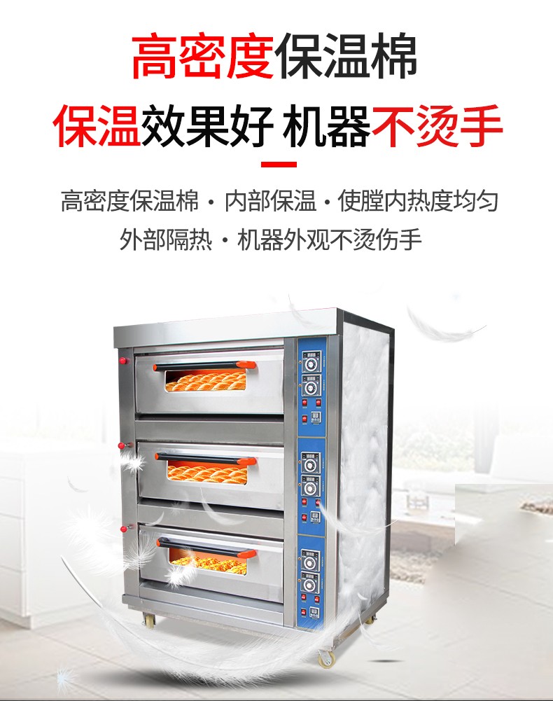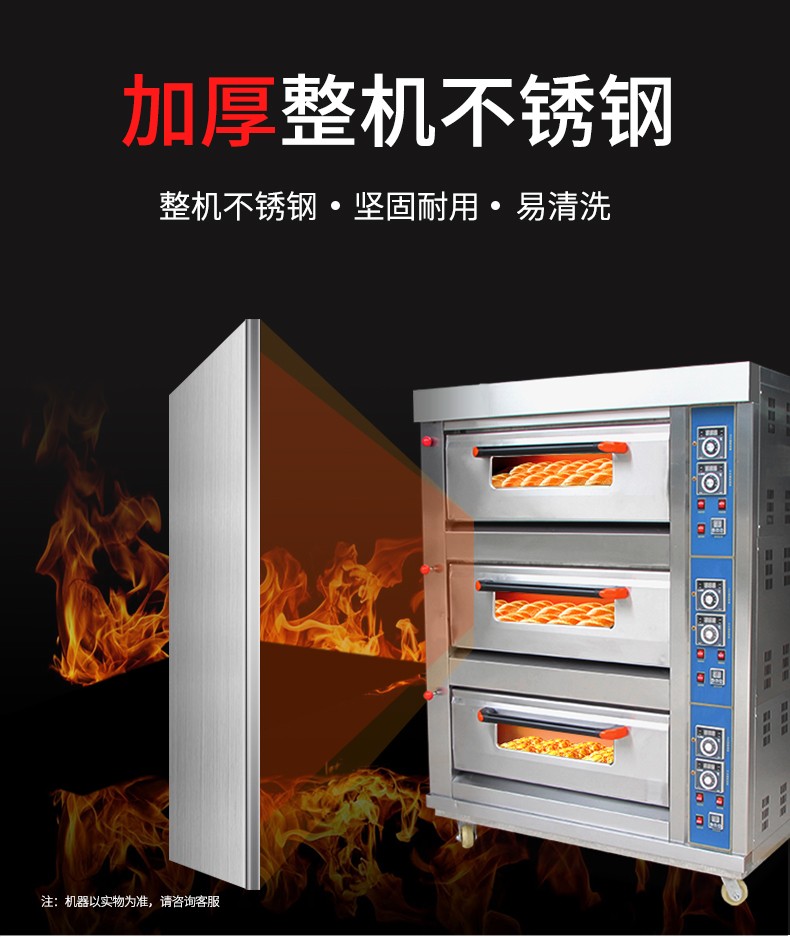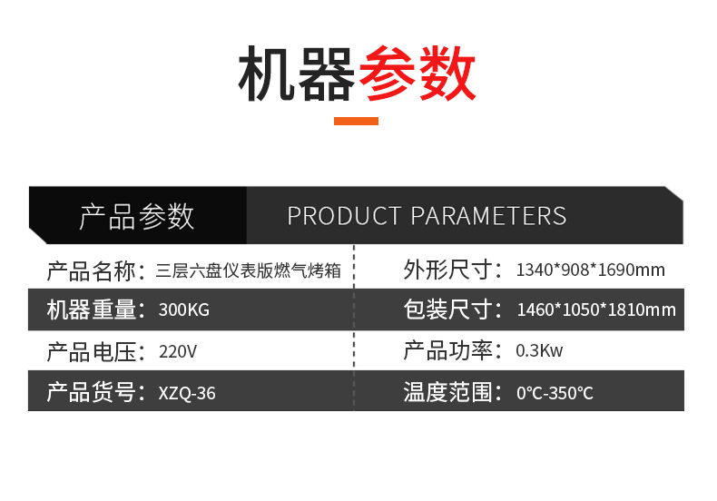 名稱三層六盤儀表版燃氣烤箱 電源220V 功率0.3KW 產量 尺寸1340*908*1690mm 重量300KG 規格三層六盤 其他