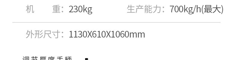 名稱350A壓面機 電源220v 功率2.2kw 產量755kg/h 尺寸1130*610*1060mm 重量230kg 規格壓面寬度:<350mm 其他