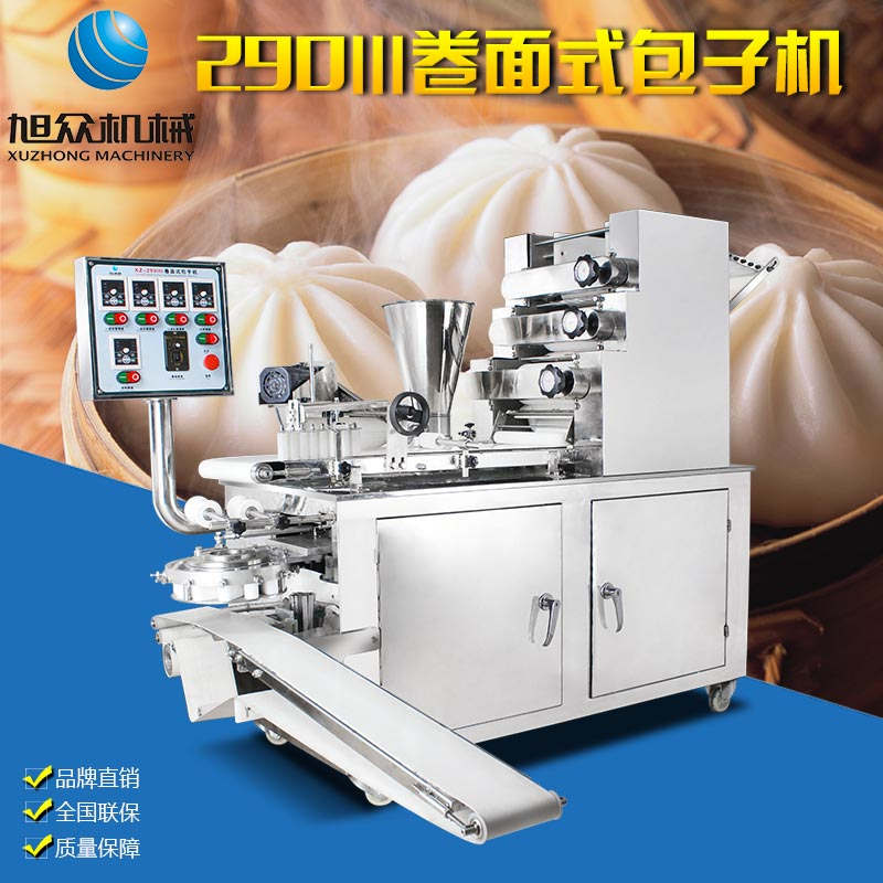 290III卷面式包子機(jī),可生產(chǎn)各種不同餡料的包子、各式包餡食品,如豆沙包、南瓜餅、肉包、小籠包、水晶包等幾十種包餡制品。適用于個(gè)體戶(hù)、食品廠(chǎng)、學(xué)校等單位食堂??蓾M(mǎn)足不同客戶(hù)群體。免費(fèi)提供工藝技術(shù)。