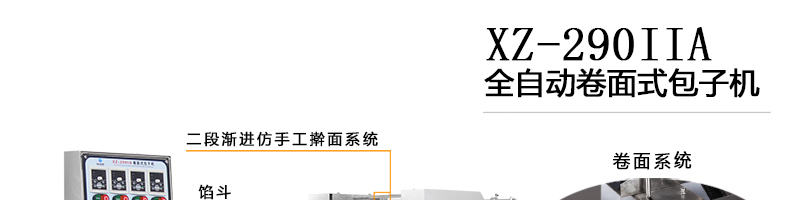 XZ-290IIA包子機(jī),可生產(chǎn)各種不同餡料的包子、各式包餡食品,如豆沙包、南瓜餅、肉包、小籠包、水晶包等幾十種包餡制品。適用于個(gè)體戶、食品廠、學(xué)校等單位食堂??蓾M足不同客戶群體。免費(fèi)提供工藝技術(shù)。