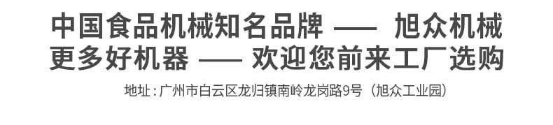 廣州旭眾食品機械有限公司是一家集科研開發(fā),生產(chǎn)設(shè)計,營銷服務(wù)為一體的現(xiàn)代化生產(chǎn)企業(yè)?,F(xiàn)代化生產(chǎn)車間,精湛制造技術(shù),所產(chǎn)機械歷經(jīng)市場重重考驗,不斷贏得海內(nèi)外客戶的贊譽。