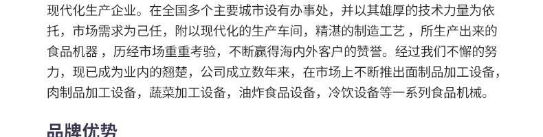 廣州旭眾食品機(jī)械有限公司是一家集科研開發(fā),生產(chǎn)設(shè)計,營銷服務(wù)為一體的現(xiàn)代化生產(chǎn)企業(yè)?,F(xiàn)代化生產(chǎn)車間,精湛制造技術(shù),所產(chǎn)機(jī)械歷經(jīng)市場重重考驗,不斷贏得海內(nèi)外客戶的贊譽(yù)。