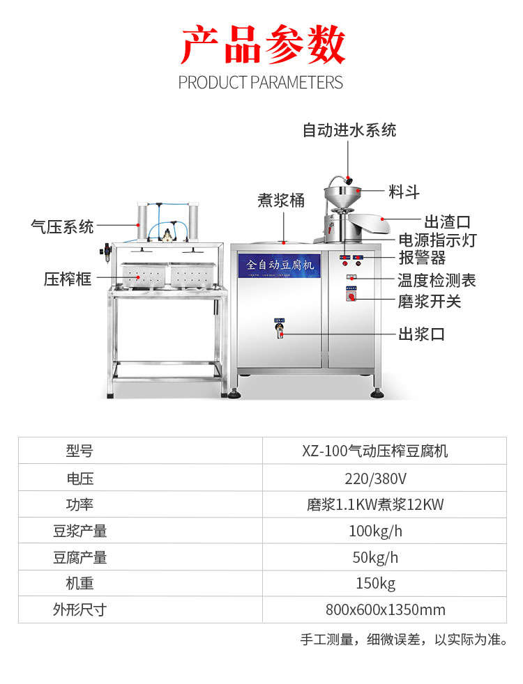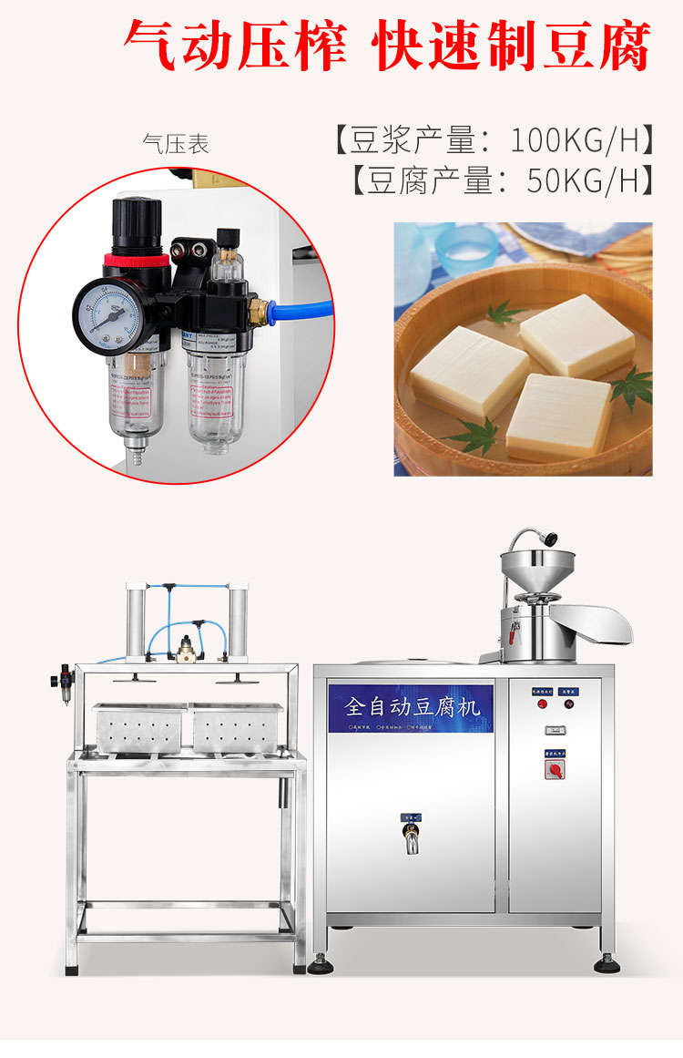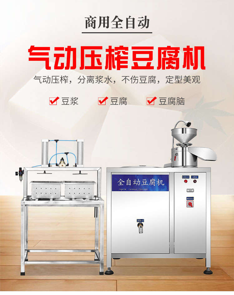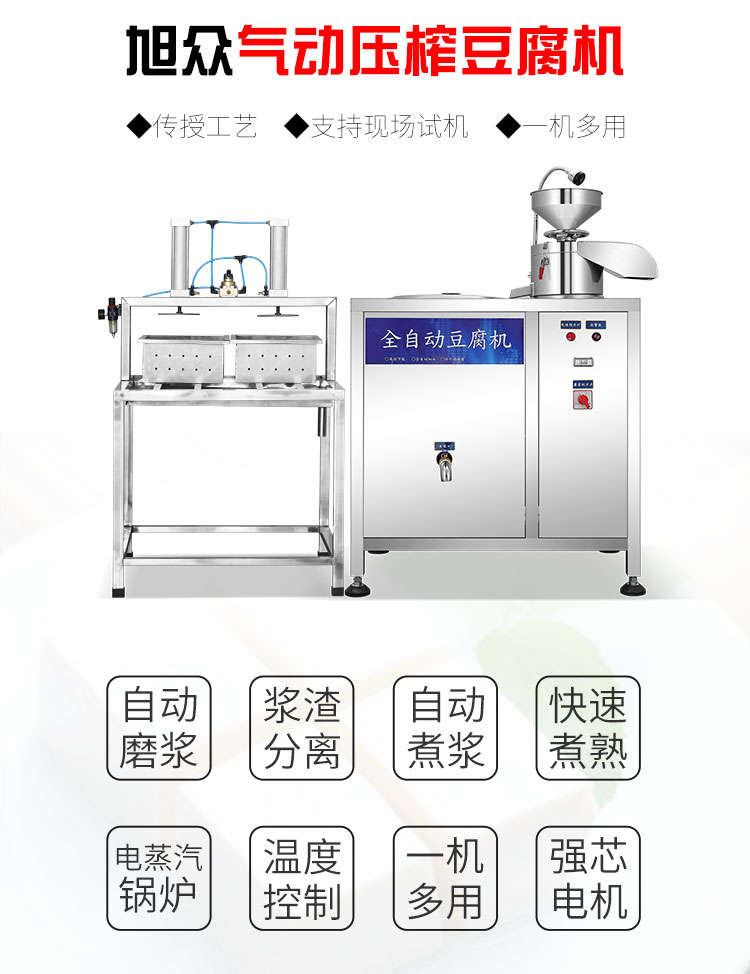 XZ-100型全自動(dòng)豆腐機(jī),商用全自動(dòng)氣動(dòng)壓榨豆腐機(jī)氣動(dòng)壓榨,分離漿水,不傷豆腐,定型美觀(guān)。