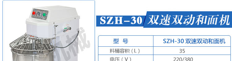 SZH-30型雙速雙動(dòng)和面機(jī),本機(jī)適合攪拌各種面包、包子、饅頭、湯圓、披薩餅面團(tuán),專業(yè)設(shè)計(jì)避免面團(tuán)過分升溫并確保面團(tuán)含氧量。過載、缺相保護(hù)裝置,防護(hù)罩安全連動(dòng)裝置。