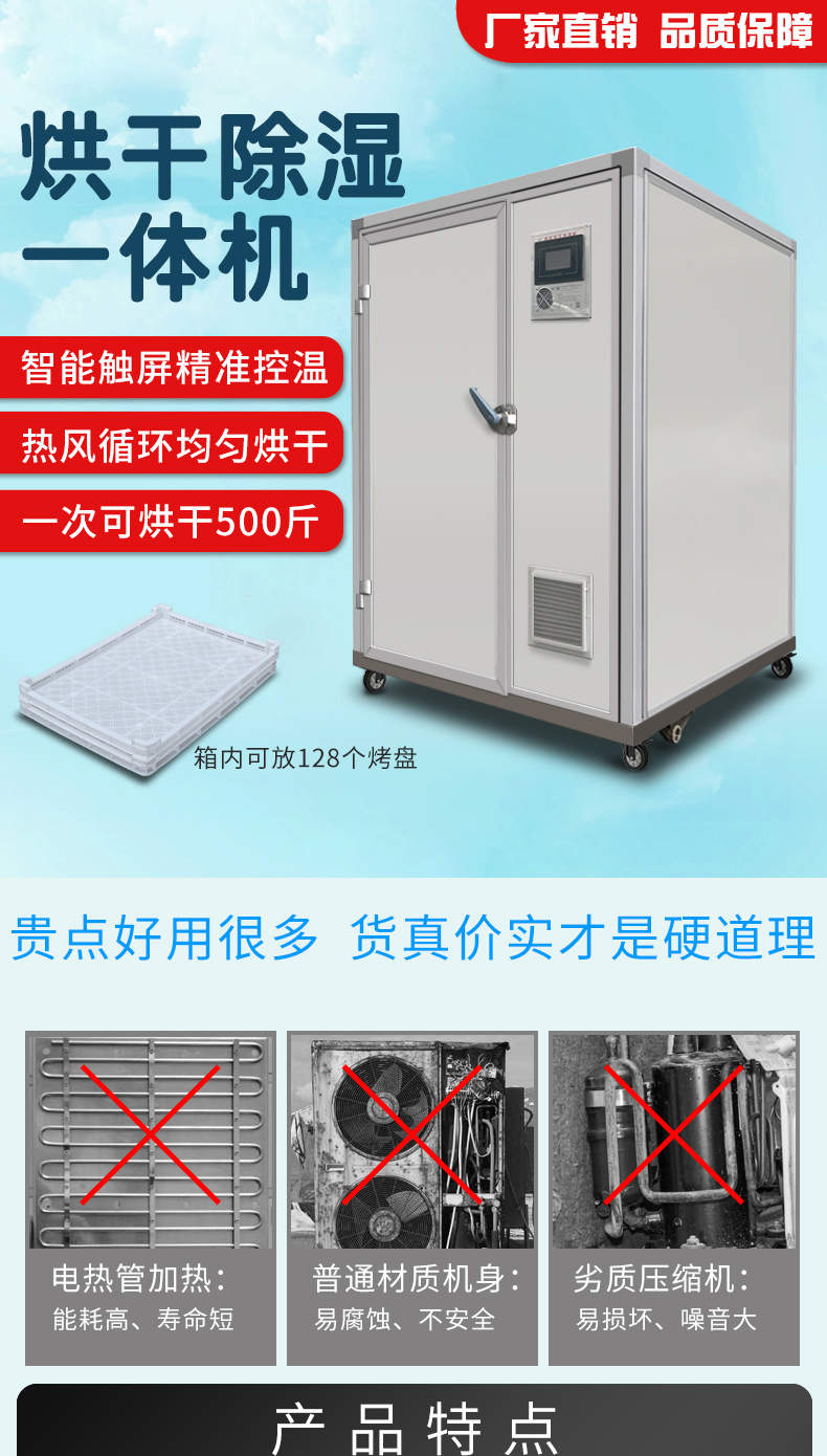 烘干除濕一體機,烘干除濕體機,智能觸屏精準(zhǔn)控溫?zé)犸L(fēng)循環(huán)均勻烘干次可烘干500斤,智能烘干時代出類拔萃的新體驗,1度電能=4度,熱能比傳統(tǒng)電加熱。干燥設(shè)備減少60%以上電能消耗。