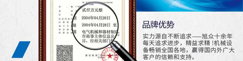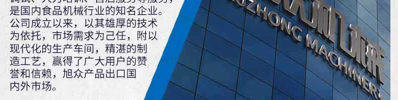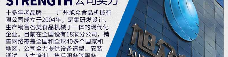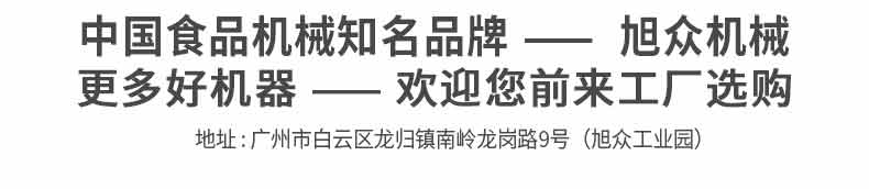 廣州旭眾食品機(jī)械有限公司是一家集科研開發(fā),生產(chǎn)設(shè)計,營銷服務(wù)為一體的現(xiàn)代化生產(chǎn)企業(yè)?,F(xiàn)代化生產(chǎn)車間,精湛制造技術(shù),所產(chǎn)機(jī)械歷經(jīng)市場重重考驗,不斷贏得海內(nèi)外客戶的贊譽。