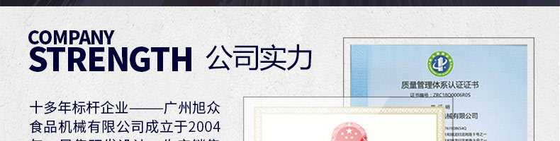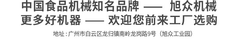廣州旭眾食品機(jī)械有限公司是一家集科研開(kāi)發(fā),生產(chǎn)設(shè)計(jì),營(yíng)銷(xiāo)服務(wù)為一體的現(xiàn)代化生產(chǎn)企業(yè)?,F(xiàn)代化生產(chǎn)車(chē)間,精湛制造技術(shù),所產(chǎn)機(jī)械歷經(jīng)市場(chǎng)重重考驗(yàn),不斷贏(yíng)得海內(nèi)外客戶(hù)的贊譽(yù)。