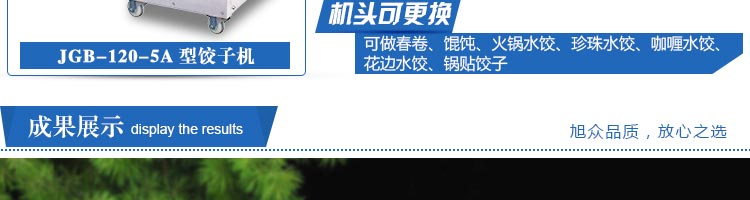 JGB-120-5A型輸送帶餃子機,本機是一款可生產(chǎn)各種肉餡、肉菜混合餡、全菜餡及其他種餡餃子的設備。一機多用途,只要更換模具,就可制作不同的食品,如春卷、餛飩、咖喱角、鍋貼等。適用于賓館、飯店、餐廳、團體食堂加工,幼兒園、速凍餃子生產(chǎn)。