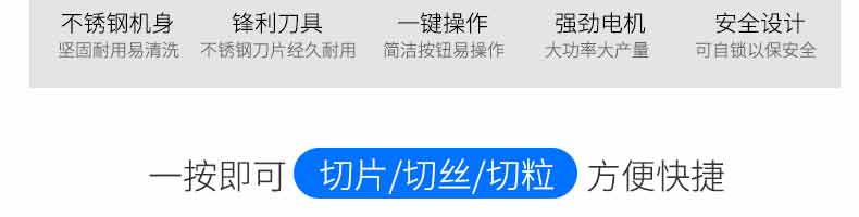 XZ-QX320-切肉機,小型切肉機是一款主要對肉類進行加工的設(shè)備,配置單層刀具一次性切肉片,二次切肉絲,再切成料。刀具采取外置懸臂式設(shè)計,拆洗方便,衛(wèi)生更有保障;配置多種刀具,可加工不同厚度的肉片,實現(xiàn)一機多用;機內(nèi)裝有安全保護開頭,刀具外露時,機器自鎖不能啟動,以保安全;卸下的刀具,不用清洗直接放置在6攝氏度以下的冰箱里,刀具余肉不發(fā)臭。刀片用特殊不銹鋼材料制造,經(jīng)久耐用。