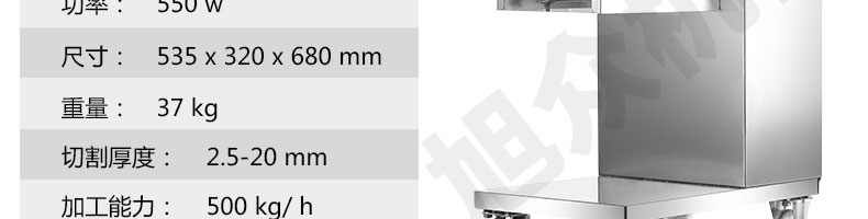 XZ-QE切肉機,是一款可方便移動的肉類加工設(shè)備,配置單層刀具一次性切肉片,二次切肉絲,再切成粒。底座設(shè)置有滑輪,移動靈活,輕松便捷;刀具采取外置懸臂式設(shè)計,拆洗方便,衛(wèi)生更有保障;配置多種刀具,可加工不同厚度的肉片,實現(xiàn)一機多用;機內(nèi)裝有安全保護開頭,刀具外露時,機器自鎖不能啟動,以保安全;刀片用特殊不銹鋼材料制造,經(jīng)久耐用;卸下的刀具,不用清洗直接放置在6攝氏度以下的冰箱里,刀具余肉不發(fā)臭。