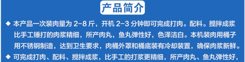 SZ-24型高速肉丸打漿機(jī),高速肉丸打漿機(jī)選用不銹鋼,生產(chǎn)過程中改善了肉質(zhì)脂肪纖維,生產(chǎn)出的丸子外表光滑細(xì)膩、低脂、口感爽脆、彈性好、韌性好,是潮州肉丸的專用打漿機(jī)。
