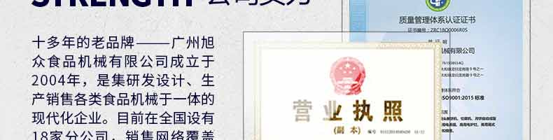 廣州旭眾食品機(jī)械有限公司是一家集科研開發(fā),生產(chǎn)設(shè)計,營銷服務(wù)為一體的現(xiàn)代化生產(chǎn)企業(yè)。現(xiàn)代化生產(chǎn)車間,精湛制造技術(shù),所產(chǎn)機(jī)械歷經(jīng)市場重重考驗,不斷贏得海內(nèi)外客戶的贊譽(yù)。