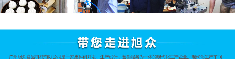 廣州旭眾食品機械有限公司是一家集科研開發(fā),生產設計,營銷服務為一體的現(xiàn)代化生產企業(yè)?,F(xiàn)代化生產車間,精湛制造技術,所產機械歷經(jīng)市場重重考驗,不斷贏得海內外客戶的贊譽。