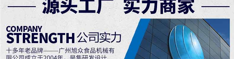 廣州旭眾食品機(jī)械有限公司是一家集科研開(kāi)發(fā),生產(chǎn)設(shè)計(jì),營(yíng)銷(xiāo)服務(wù)為一體的現(xiàn)代化生產(chǎn)企業(yè)。現(xiàn)代化生產(chǎn)車(chē)間,精湛制造技術(shù),所產(chǎn)機(jī)械歷經(jīng)市場(chǎng)重重考驗(yàn),不斷贏得海內(nèi)外客戶的贊譽(yù)。