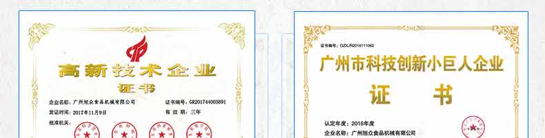 廣州旭眾食品機械有限公司是一家集科研開發(fā),生產(chǎn)設(shè)計,營銷服務(wù)為一體的現(xiàn)代化生產(chǎn)企業(yè)?,F(xiàn)代化生產(chǎn)車間,精湛制造技術(shù),所產(chǎn)機械歷經(jīng)市場重重考驗,不斷贏得海內(nèi)外客戶的贊譽。
