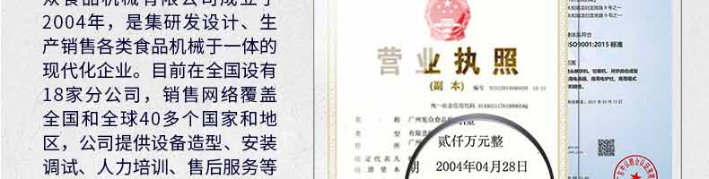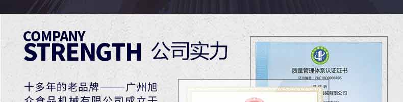 廣州旭眾食品機械有限公司是一家集科研開發(fā),生產設計,營銷服務為一體的現代化生產企業(yè)?,F代化生產車間,精湛制造技術,所產機械歷經市場重重考驗,不斷贏得海內外客戶的贊譽。